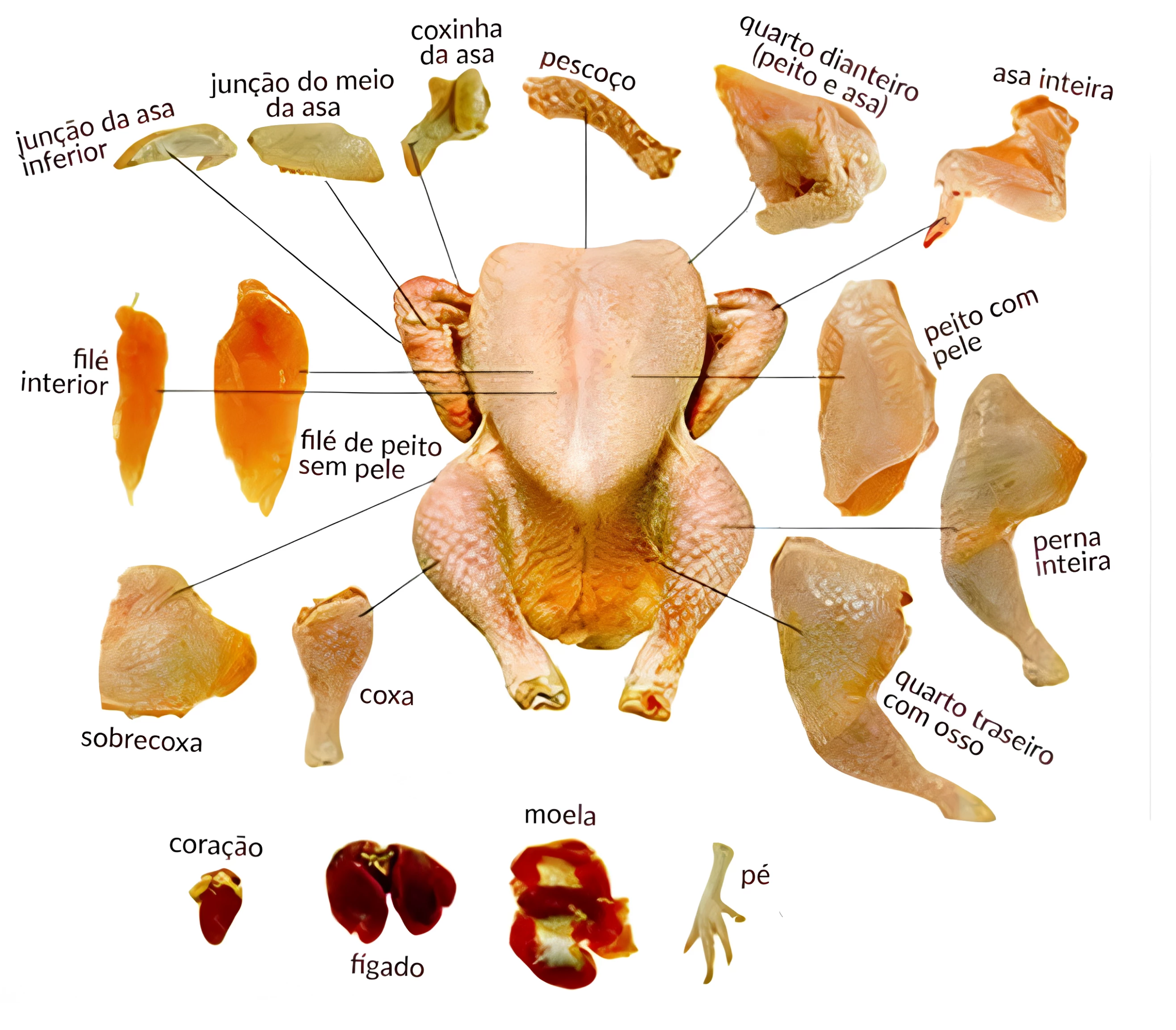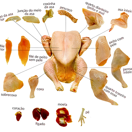 Variedade de cortes e produtos – frango inteiro, cortes especiais e produtos processados, conforme a demanda de cada mercado.